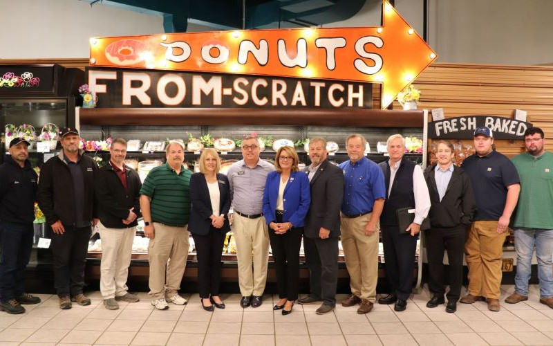 Senator Helming was joined at the Honeoye Falls Marketplace on Tuesday by the owners of Joey’s Northside Grocery, Newark; Caledonia Marketplace; Bliss Shurfine Food Mart, Manchester; West’s Shurfine Food Markets, Honeoye and Livonia; Busters Market, Scottsville; Van Ernst Refrigeration, East Rochester; and Mendon Town Supervisor John Moffitt and Honeoye Falls Mayor Richard Milne.