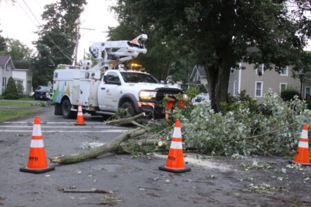 Hundreds of NYSEG customers in Cayuga, Seneca, and Ontario counties were without power Tuesday afternoon.