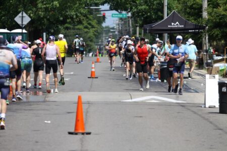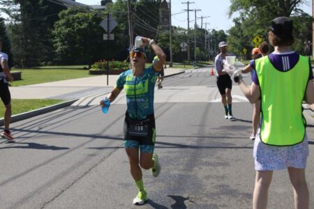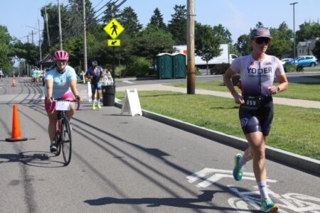 The day began with 1.2-mile swim, a 56-mile bike ride, and finished with a 13.1-mile run.