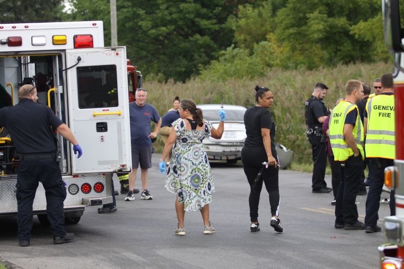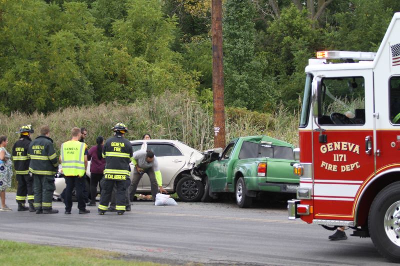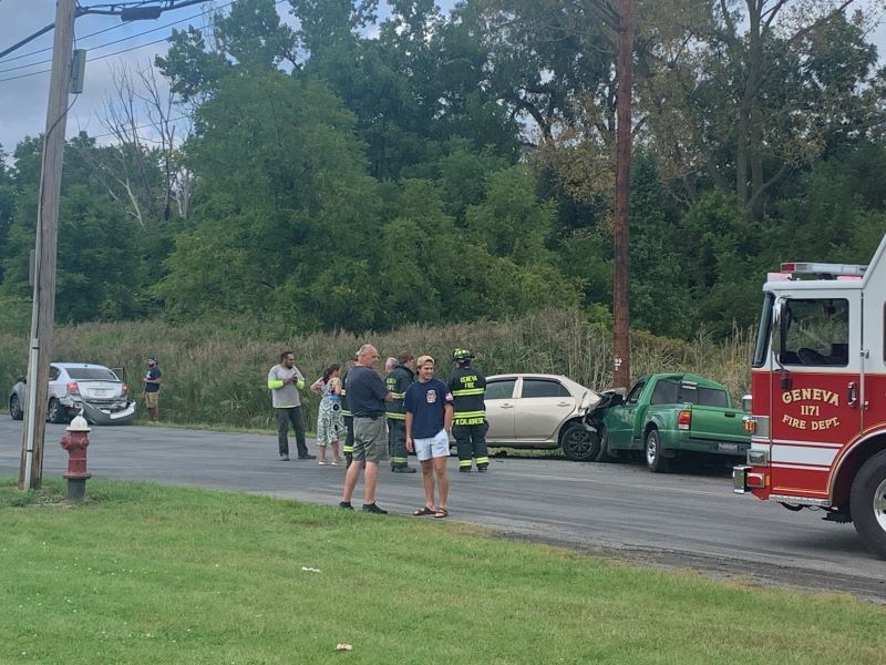 A three-car accident on PreEmption Street in Geneva just before 4 p.m. sent at least one person to the hospital.