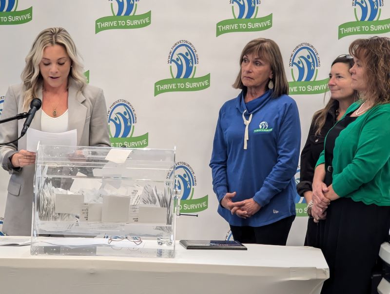 In conjunction with Friendly Chrysler Dodge Jeep Ram of Geneva, Thrive to Survive sold 2,191 raffle tickets for a chance to win a donated 2024 Jeep Compass. The drawing was held Friday at Friendly in Geneva and Darlene Dougherty, of Geneva, was the winner. Organizers say approximately $60,000 was raised through the raffle with numbers being finalized next week.