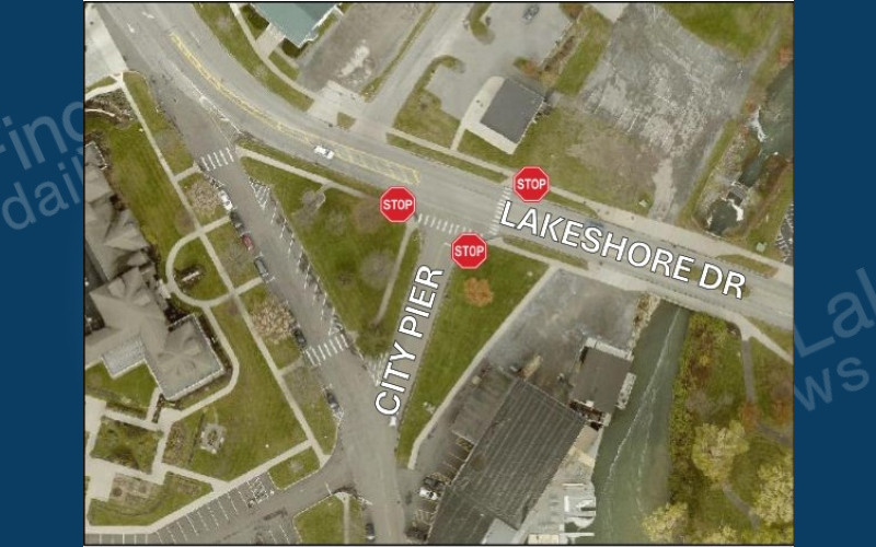Starting Wednesday, the Lakeshore Drive and City Pier intersection will be a three-way stop. The existing left turn restriction from the City Pier will be removed. The city says new signs will be installed on Wednesday.