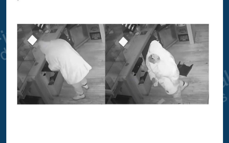 Officers determined that at approximately 1:55 Saturday morning, a suspect forced entry into Monaco’s Coffee by throwing a dumbbell through the front door. The suspect stole over $100 from the cash register and fled the scene. It was determined the suspect caused over $250 in damage to the business door.
