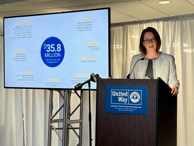 Frank Hamlin III, the 2022 Campaign Chair and CEO of Canandaigua National Bank, announced that the 2022 Make Way for Good campaign raised $17.9 million, combined with additional United Way grants and initiatives for a grand total of $35.8 million for the community.