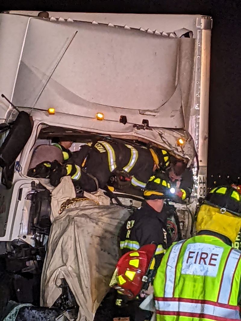 At around 4:35 Thursday morning, a 2004 tractor-trailer, operated by 52-year-old Gurvir Singh, of Ohio, was traveling east hauling shampoo bottles when it struck the guardrail leaving the tractor-trailer sideways in the roadway. A 2024 tractor-trailer, operated by 38-year-old Richard Puryear, of Texas, and his passenger, was traveling eastbound when it struck the 2004 tractor-trailer, causing it to overturn and spill the shampoo out of the trailer. A 2016 Volvo tractor-trailer, operated by 70-year-old Donnie Miller, of Rochester, struck the 2024 tractor-trailer. Singh, Puryear, and Miller were all transported to Strong Memorial Hospital for minor injuries.