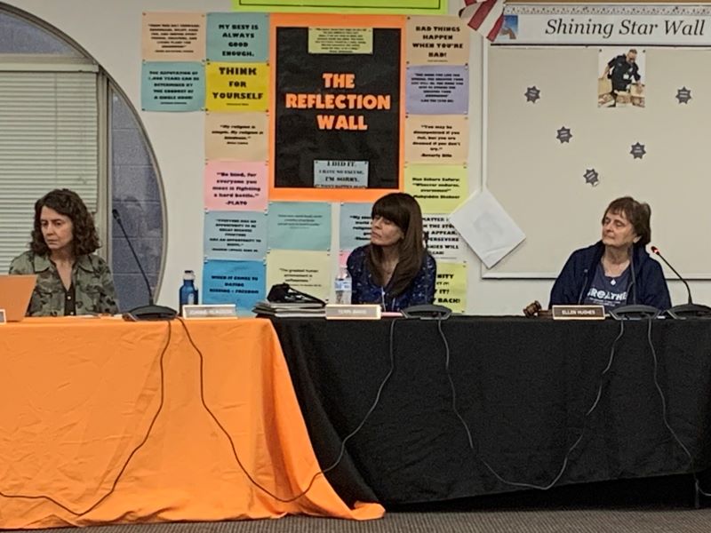 The board did not act on the motion to approve a a contract extension for superintendent. That motion was pulled from the agenda at the start of the meeting. We asked board president Ellen Hughes why they didn’t vote on the contract extension, but she was stopped from answering the question.