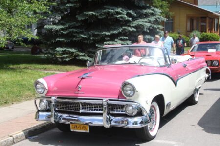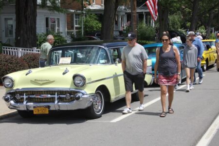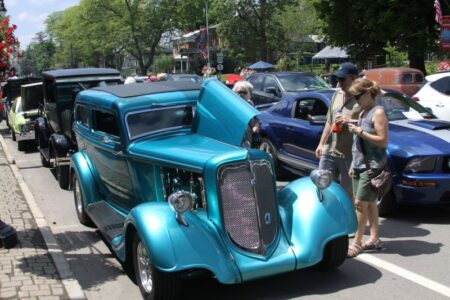 Crowds strolled down Main Street in Waterloo Sunday to see the restored classic and antique autos, the hot rods, and stock cars that used to race at the fairgrounds, sports cars, vintage tractors, and of course the Woodies that come home every year to the village where they were manufactured.