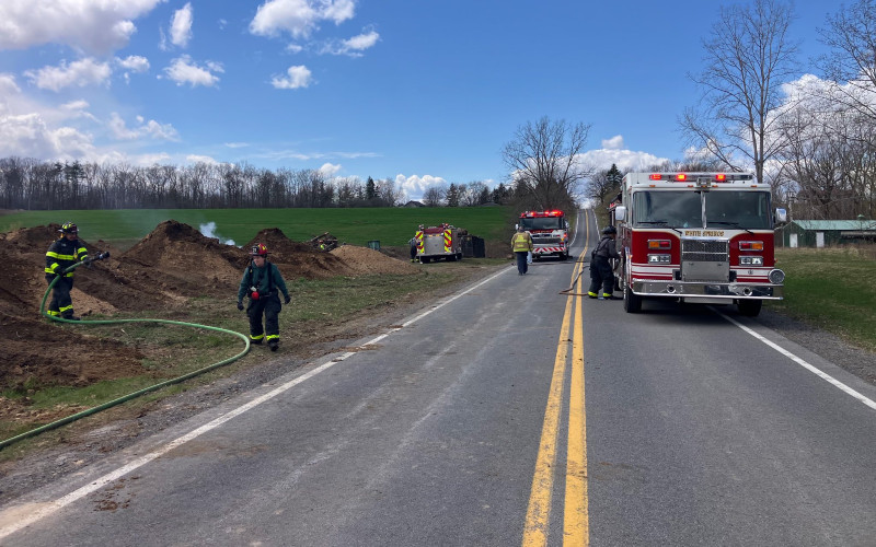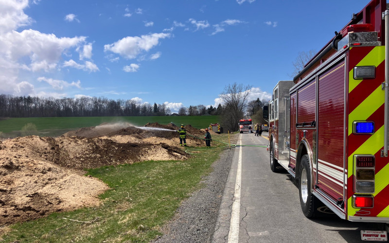 Crews from both departments worked collaboratively to contain and extinguish multiple burning compost piles and a brush pile. Thanks to the coordinated response, the fire was successfully brought under control without further incident.