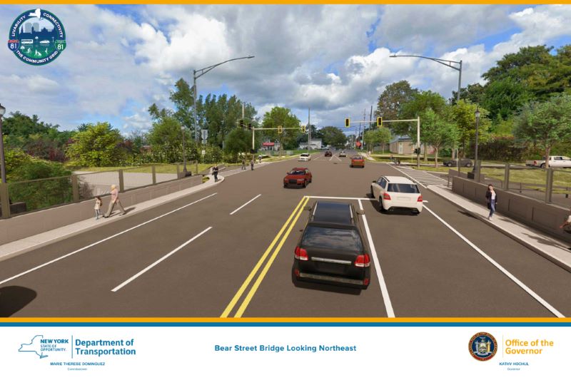 Governor Kathy Hochul on Thursday unveiled new renderings that give Syracuse residents their first glimpse of the new safety and access enhancements coming to the Inner Harbor and Northside as part of the I-81 Viaduct Project’s third contract. The six renderings depict improvements to North Clinton Street, new bridges along Bear, Court, and Spencer Streets, and pedestrian and cyclist enhancements that connect residents on the northside to the Empire State Trail.