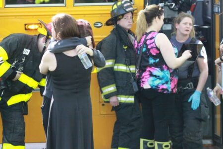 “This afternoon, an accident involving one of our school buses resulted in what appears to be injuries to the driver of the other vehicle. None of our students appear to be injured. They were assessed by paramedics and are being transported to Geneva General Hospital as a precaution. Families of the students have all been contacted.