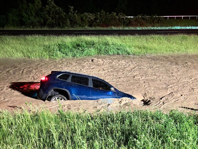 In addition to flood roads, culverts and basements, firefighters and other emergency personnel responded to the westbound lanes of Interstate 86 for a car that was sinking in the median. When crews arrived on scene, they found a blue SUV submerged in the median after hitting a spot on the highway where water was flowing over the roadway, causing them to hydroplane.