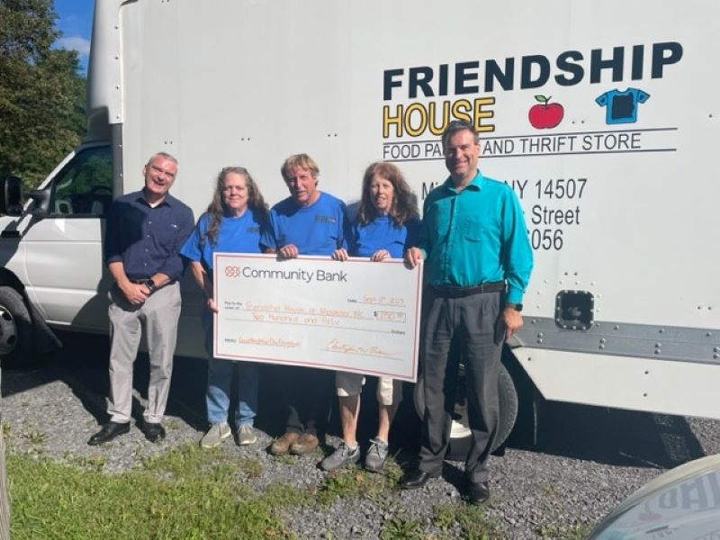 This year, Community Bank’s Canandaigua branch is supporting the Friendship House of Middlesex Food Pantry with a $250 donation, while the Penn Yan branch is supporting Veterans One Stop Center of WNY, Inc. with a $250 donation. The donation will support the “We Are Dwyer” program in Yates County.