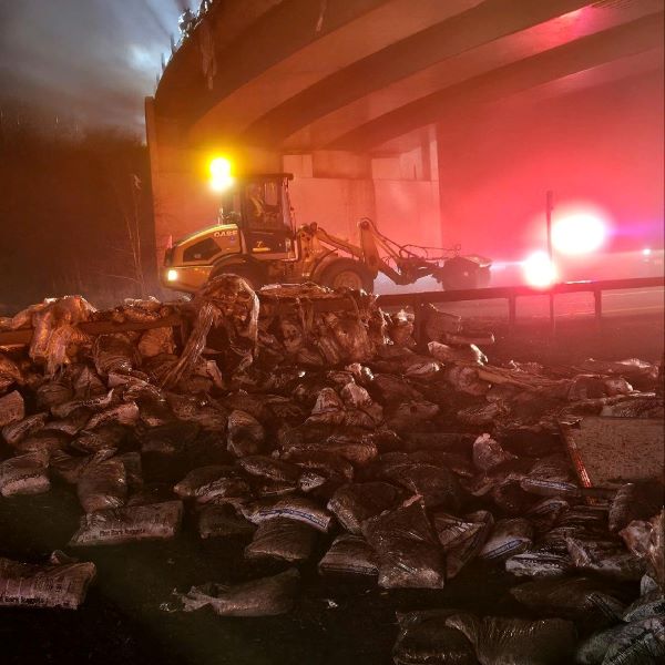 The Bath Fire Department responded to a mutual aid request from Avoca shortly after 4 o’clock for the tractor-trailer accident on the Interstate 86 flyover to Interstate 390. The driver of the truck was trapped in the cab, which was hanging off the overpass above the northbound lanes of Interstate 390.