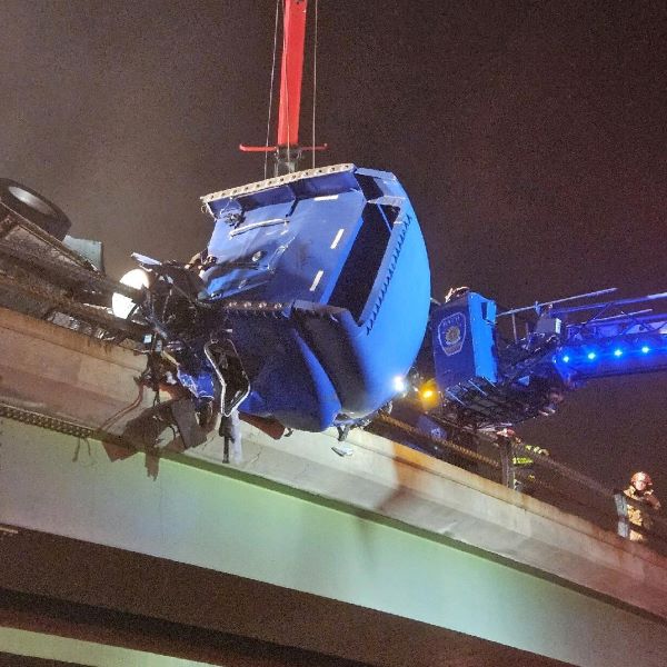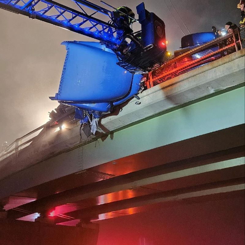 A two-pronged rescue was initiated by members of the Bath’s Rope Rescue team from above and the crew of Truck 5 from below. Extrication was completed when the driver self-extricated onto the aerial platform of Truck 5. The unidentified man turned over to EMTs with the Bath VA ambulance.