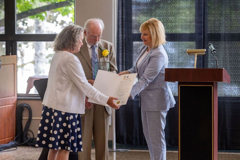 College President Amy Storey praised the Gileses for their exemplary civic engagement.