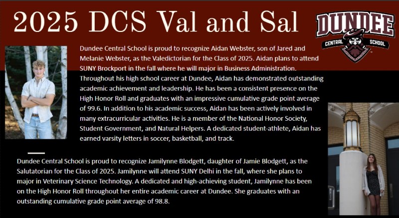 Dundee Central School has named its Valedictorian and Salutatorian for the Class of 2025.