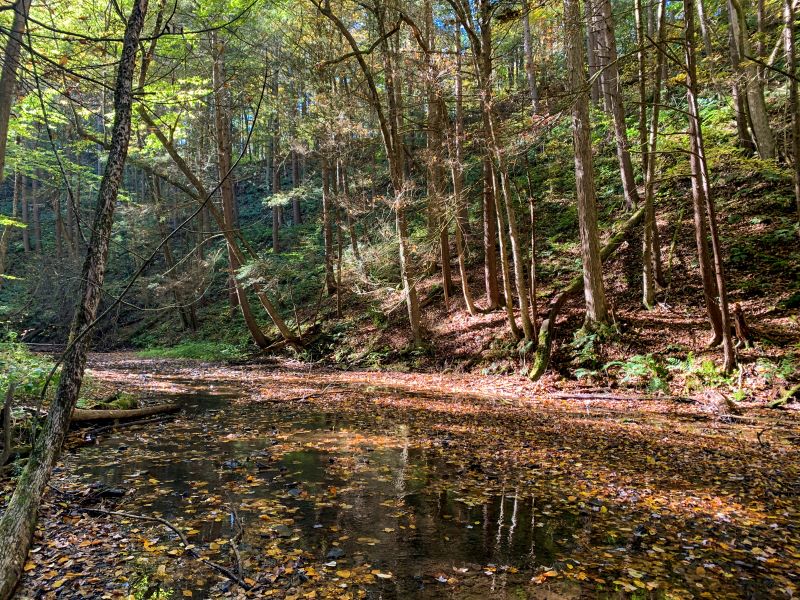 Located off of Oak Hill Road, the property shares a boundary with a section of the Finger Lakes Trail which follows along Cayuta Creek, a tributary of the Susquehanna River.
