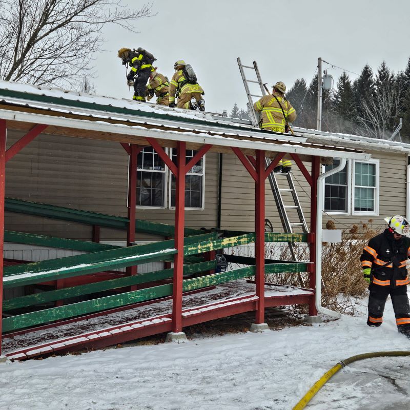 Firefighters spotted flames around the chimney area of a double wide mobile home when they arrived on scene on County Route 11 in the town of Bath just after 4 o’clock. The fire quickly spread into the attic space and continued to spread. Interior crews were able to hold the fire to half of the home with minor smoke damage through the other half. The two people in the home and their animals all escaped safely.