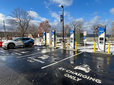 The latest EVolve NY high-speed chargers are located in the Southern Tier in a municipal lot at 155 S. Clute Park Drive, Clute Park. The site, on the Electrify America network, is equipped with four fast charging stations—all with combined charging system (CCS) connectors rated at up to 350 kilowatts (kW). Under ideal conditions, charging time is as little as 20 minutes.