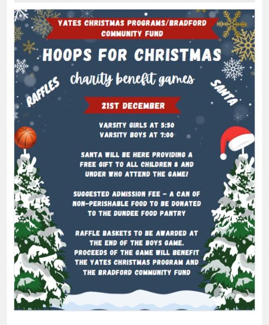The Dundee-Bradford basketball programs are helping give back to the communities that support them with a benefit that will be held at Thursday night home games. Dundee School Athletic Director Scott Shepardson tells us more about Thursday’s Hoops for Christmas.