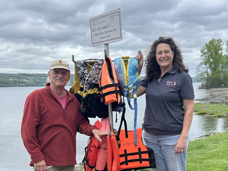 Just in time for this week’s National Safe Boating Week, the club’s loaner life jacket trees in Watkins Glen are ready for folks who need one or more as they kayak, canoe or cruise Seneca.