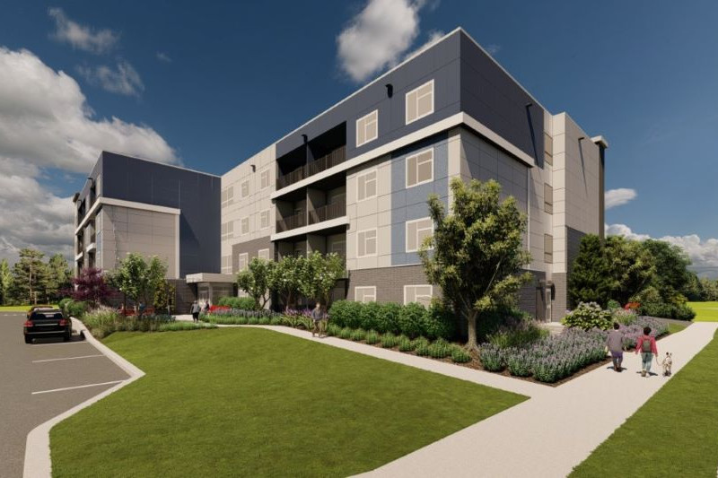 All 42 apartments are affordable to households with incomes at or below 60 percent of the Area Median Income. Residential amenities include a community room, laundry room, a patio, and playground. Each apartment has its own patio or balcony, and residents are provided with free high-speed broadband internet. The site also includes open green space, plazas for events/outdoor dining, and stormwater management gardens featuring native plantings.
