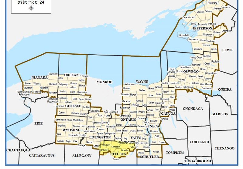 It was announced on Thursday by the Board of Elections that seven Steuben County towns will no longer be in the 25th Congressional District but instead will now be included in the district currently represented by Congresswoman Claudia Tenney. The towns are Prattsburgh, Pulteney, Wheeler, Wayland, Avoca, Cohocton, and Dansville.