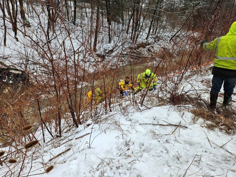 The Odessa Fire Department performed a cold water rescue Sunday morning following a car crash on State Route 13 near the Schuyler and Chemung County line. The call came in just before 10 o’clock for a motor vehicle crash with a rollover and a patient in the waterway after rescuing themselves from the car.