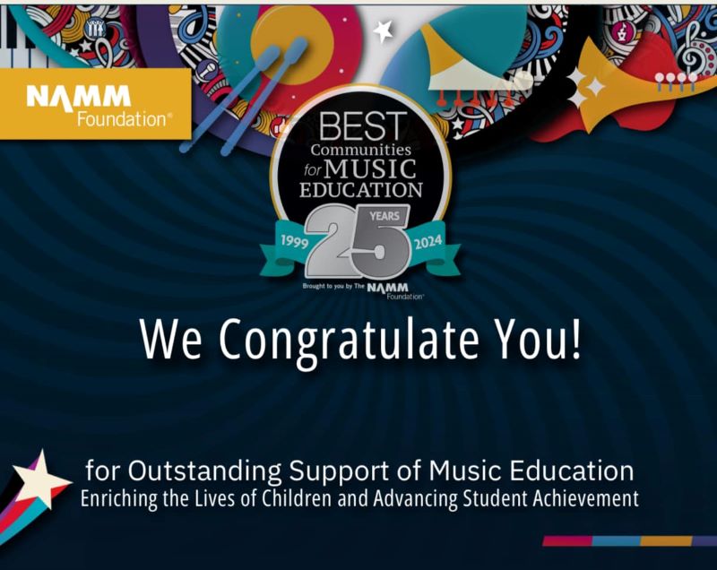 Now in its 25th year, the NAMM designation is awarded to school districts that demonstrate outstanding achievement in efforts to provide music access and education to all students.