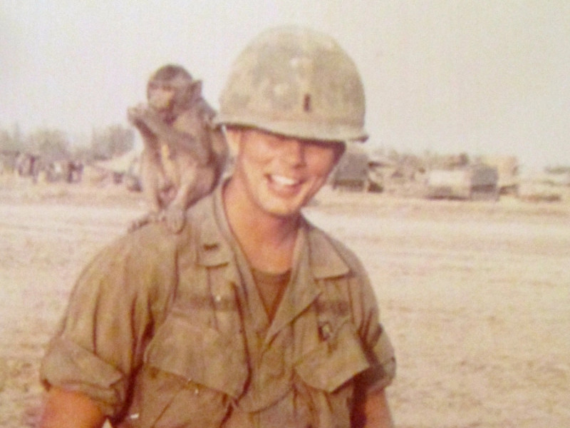 Mr. Abbett with a spider monkey that was his units mascot (photo: provided)