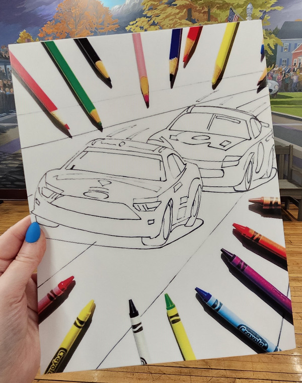 The artwork for the coloring book was created by Robert Gillespie, a renowned local motorsports artist and educator, whose illustrations capture the vibrancy and spirit of racing in the region. His contributions help connect students to the area’s storied history through engaging and age-appropriate imagery.