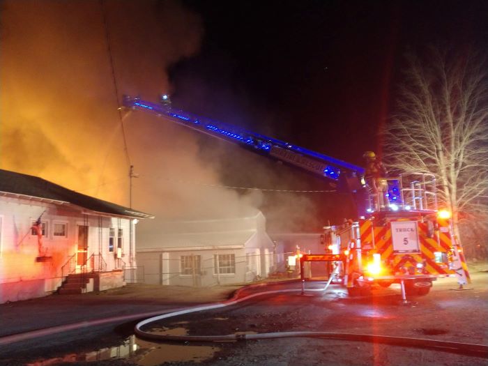 At 9:02 PM on Monday, March 11th the Bath Volunteer Fire Department was dispatched for a possible structure fire at the former Babcock Ladder Factory currently owned by Clark’s Specialty Company reported by a passerby located at 36 Delaware Ave, in the Village of Bath. The Bath Volunteer Ambulance Corps and Bath Village Police were first on the scene and confirmed flames were through the roof. Bath Assistant Fire Chief David Dowdle arrived immediately afterward and called for a full second alarm assignment and minutes later called for a third alarm assignment with heavy fire and smoke conditions.