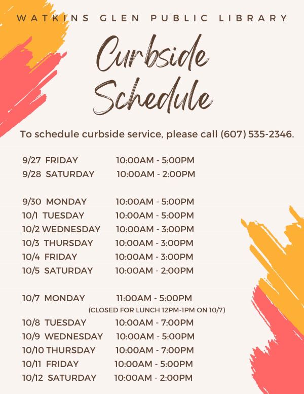 Despite the physical building being closed until October 12th, patrons can still take advantage of curbside pickup being offered. You can call the library to schedule a pickup and if you aren’t sure what you’d like, library staff will make recommendations to you based on your or your family’s reading preferences.