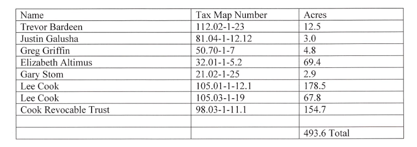 The action follows a 30-day application period that ended November 30, 2025, during which landowners were allowed to request inclusion of viable agricultural land under New York State Agriculture and Markets Law. County officials say six requests were submitted, covering eight parcels totaling 493.6 acres. The impacted properties can be found below.