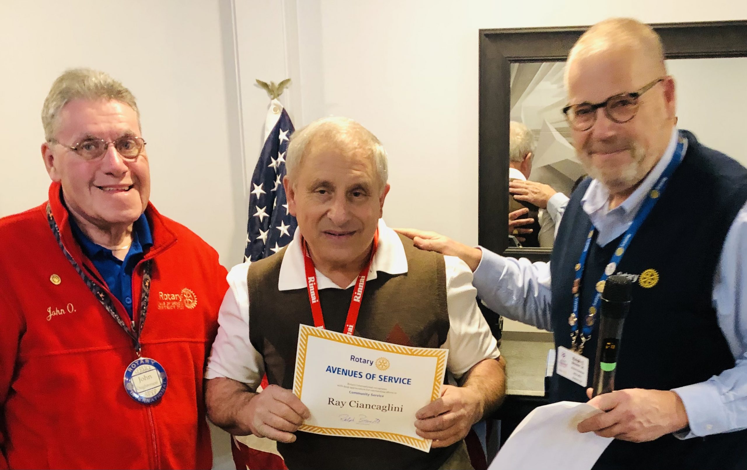The certificate presented to Ciancaglini notes that Rotary International recognizes him “with deep appreciation for outstanding efforts in Community Service” and is signed by District Governor Brandt.