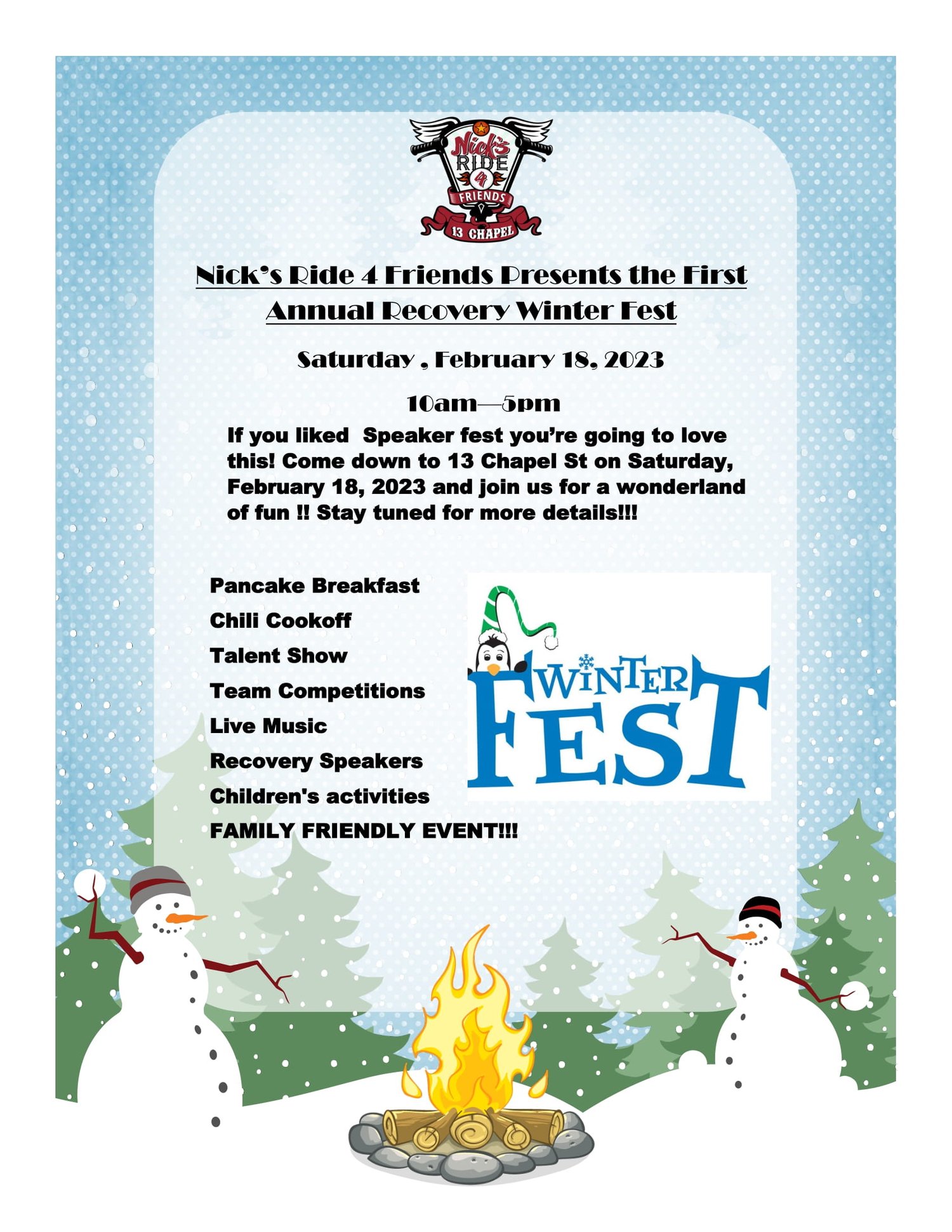 Nick’s Ride’s Recovery Winterfest runs from 10:00a-5:00p at their Chapel Street location.