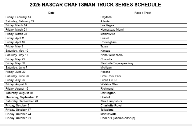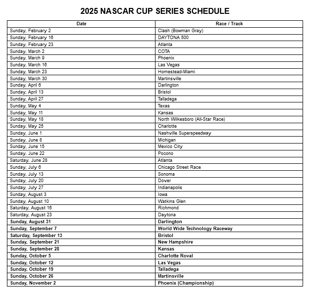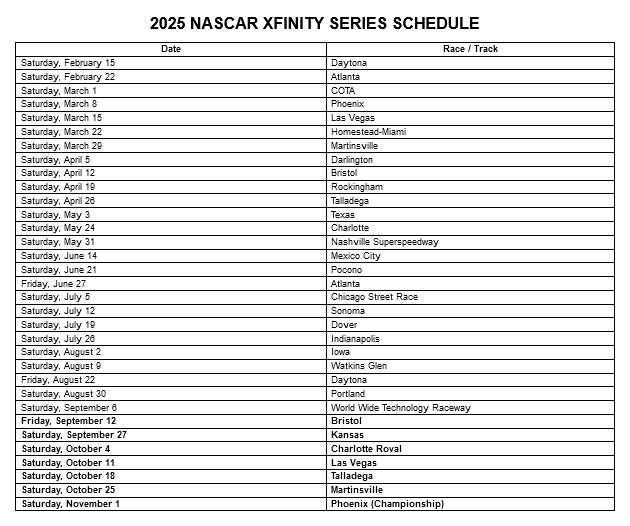 NASCAR released its 2025 schedule on Thursday and Watkins Glen will host Xfinity and Cup Series races on August 9th and 10th. The Craftsman Truck Series will run at Watkins Glen on August 8th for the first time in four years.