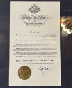 Last month Hobart College sophomore Wil Crane scored the game-winning goal with 5:05 remaining in overtime to lift the Statesmen over Adrian 3-2 in the NCAA Division III Men’s Ice Hockey National Championship contest. It is the first national title in program history for Hobart hockey.