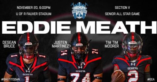 Additionally, seniors Desean Bruce, Justen Martinez, and Tim Moorer have been chosen to play in the Eddie Meath Senior All Star game which will be played at U of R Fauver Stadium on November 20 with a 6 o’clock kickoff.