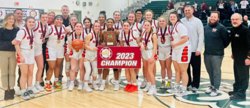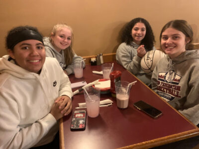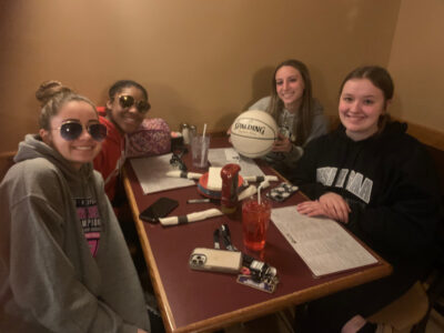The team and coaches gathered for a celebration at Ciccino’s Pizzeria and Restaurant were the girls enjoyed dinner and a chance to autograph the basketball that will go into the school’s trophy case.