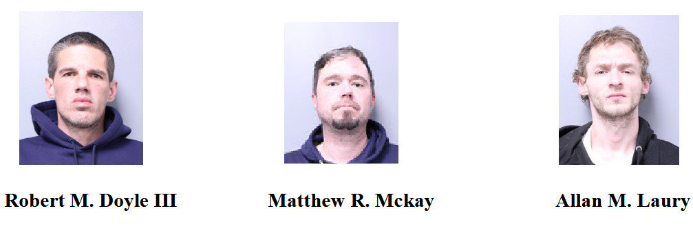All three men were brought to the Cayuga County Jail due to multiple open cases. Laury was charged with petit larceny, while Doyle and Mckay were each charged with criminal possession of stolen property. All were released on appearance tickets.