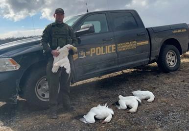 According to the Department of Environmental Conservation, two individuals were seen by a forest ranger on February 29 shooting snow geese from the side of Ninefoot Road in Junius. The shooter then allegedly picked up one of the geese, leaving the others to die.