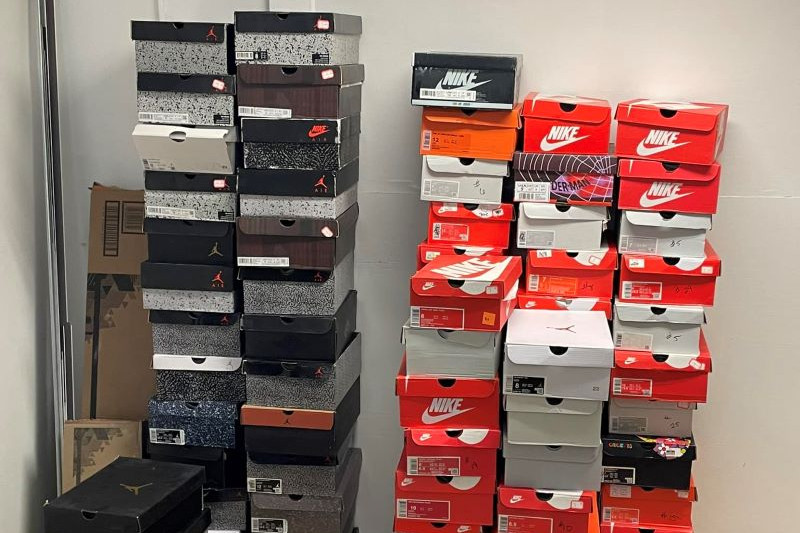 The Bath Police Department says it seized 93 pairs of counterfeit Nike sneakers from a business located on Liberty St along with other fake Nike products.