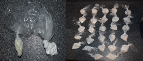 He was found to be in possession of multiple drugs and paraphernalia including 3.3 grams of cocaine, 6.5 grams of crack, over 27 ounces of molly, 13-hundred dollars cash, and weighing and packing materials.