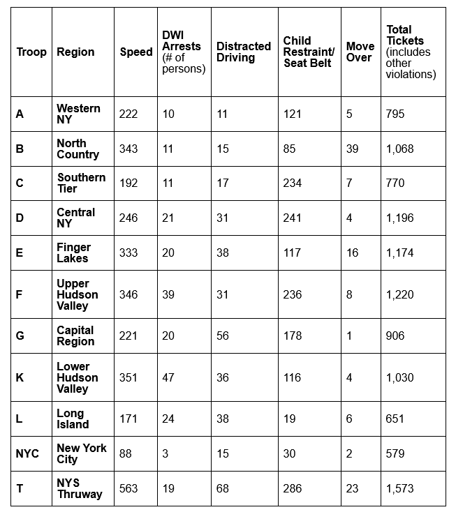 As part of the enforcement, Troopers also targeted speeding and aggressive drivers across the state. Below is a sampling of the total tickets that were issued:
