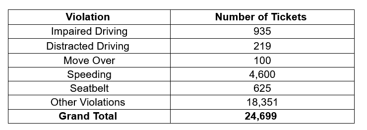 As part of the enforcement, law enforcement officers also targeted speeding and aggressive drivers across the state. Below is a breakdown of the total tickets that were issued.