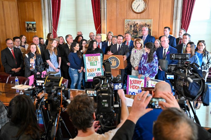 Assembly Minority Leader Will Barclay (R,C-Pulaski) and members of the Minority Conference gathered in Albany on Monday to urge Governor Kathy Hochul and her administration to take immediate action to resolve the crisis at the state’s correctional facilities including the repeal of the Humane Alternatives to Long-Term Solitary Confinement (HALT) Act. This follows a letter sent late last week by the conference seeking solutions that focused on solving the pressing issues in New York’s correctional facilities and chastised the governor for her announcement to close up to five more prisons in the middle of this critical moments.