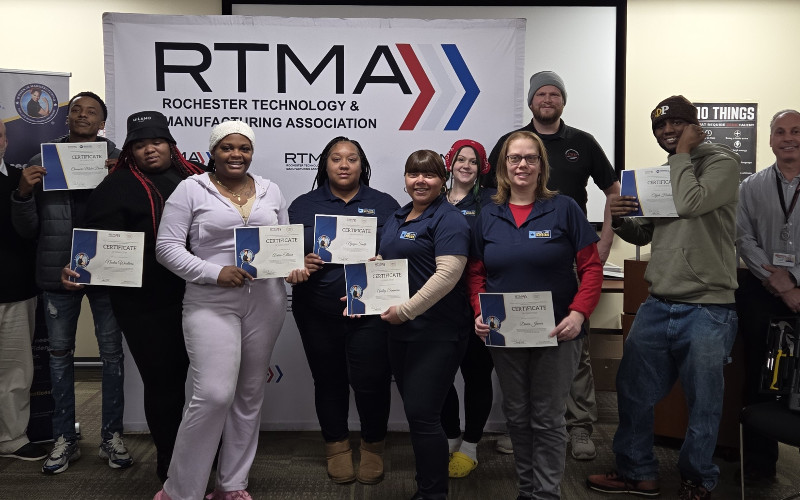 The Rochester Technology and Manufacturing Association (RTMA) and Monroe 2-Orleans BOCES Center for Workforce Development (CWD) celebrated the first-ever graduation of the Real Life Rosies Pre-Apprenticeship Program this week. Fourteen participants completed the six-week, 72-hour training program, which included earning the Certified Manufacturing Associate (CMfgA) credential through Tooling U-SME.