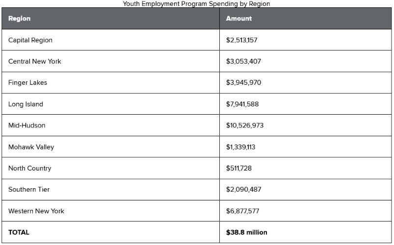 Nearly $40 million has been awarded for the next phase of the Youth Employment Program, which will help New York continue reducing gun violence by providing job opportunities and training to at-risk youth in communities across the state. The program plays an important role in New York State’s Gun Involved Violence Elimination (GIVE) Initiative, which operates in 21 counties with most of the state’s population outside New York City.