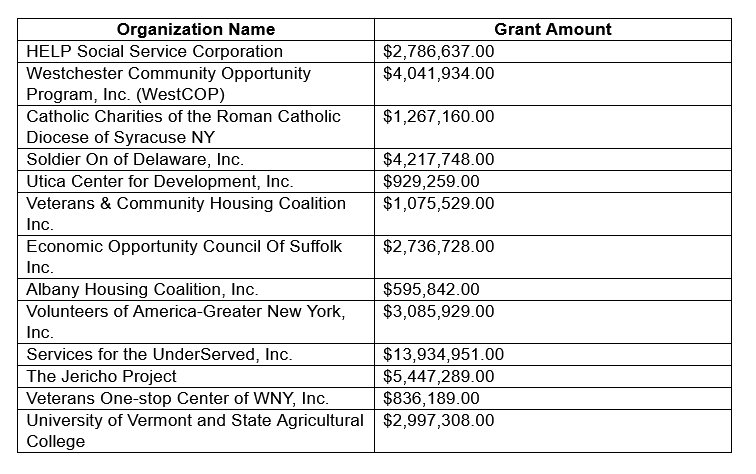 “Our brave veterans have put their lives on the line to protect us, and it’s unacceptable that after years of service to their country, so many end up on the streets,” said Senator Gillibrand. “These grants will help community organizations across New York provide more housing and services to homeless and at-risk veterans. I’m proud to announce this funding and will continue to fight to reduce veteran homelessness in New York and across the country.”